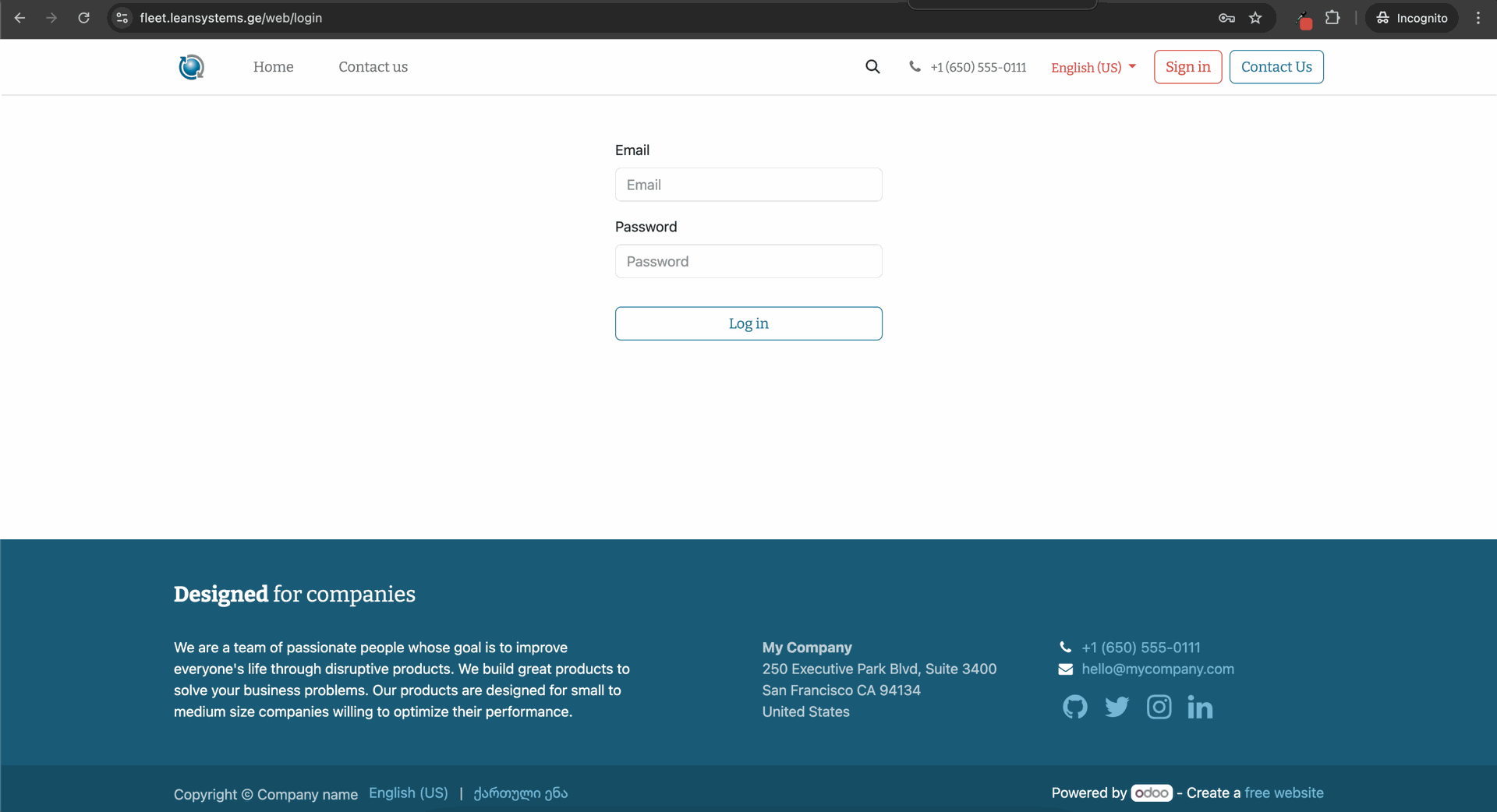 საწვავების მართვის სისტემაში შესასვლელად, საწყის გვერდზე დააჭირეთ "შესვლა" ღილაკს, ან გადადით ბმულზე: https://fleet.leansystems.ge/web/login